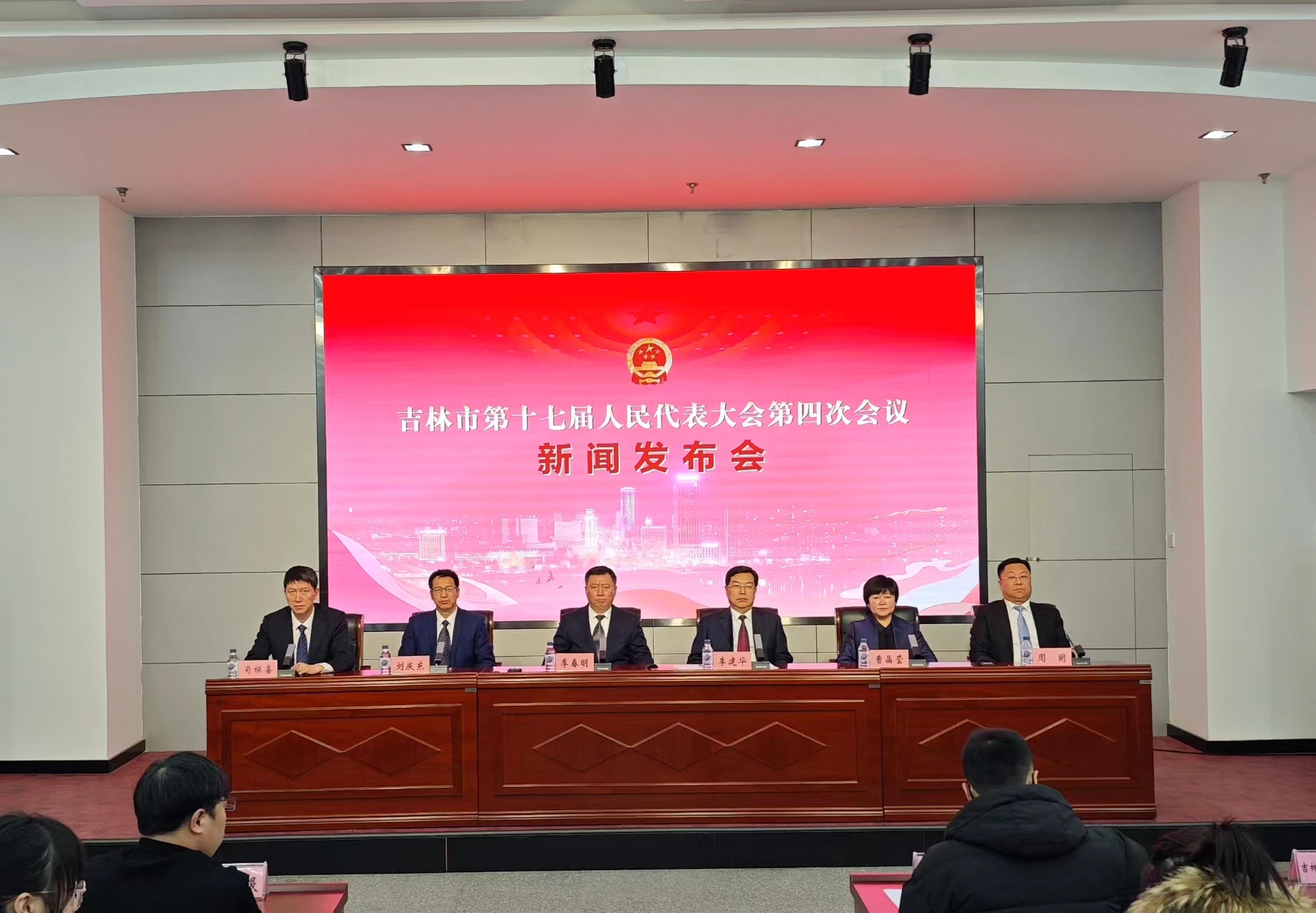 1月12日,吉林市第十七届人民代表大会第四次会议新闻发布会召开。市人大常委会党组成员、秘书长季春明,市发展和改革委员会党组书记、主任、二级巡视员李建华,市城市管理行政执法局党组书记、局长刘庆东,市文化广播电视和旅游局党组书记、局长曹晶莹,市政务服务和数字化建设管理局局长周朔出席发布会并回答记者提问。吉林广播电视台、吉林日报、中国吉林网、江城日报、吉林市广播电视台等12家媒体的15名记者参会。吉林市委宣传部副部长肖模喜主持了本场新闻发布会。