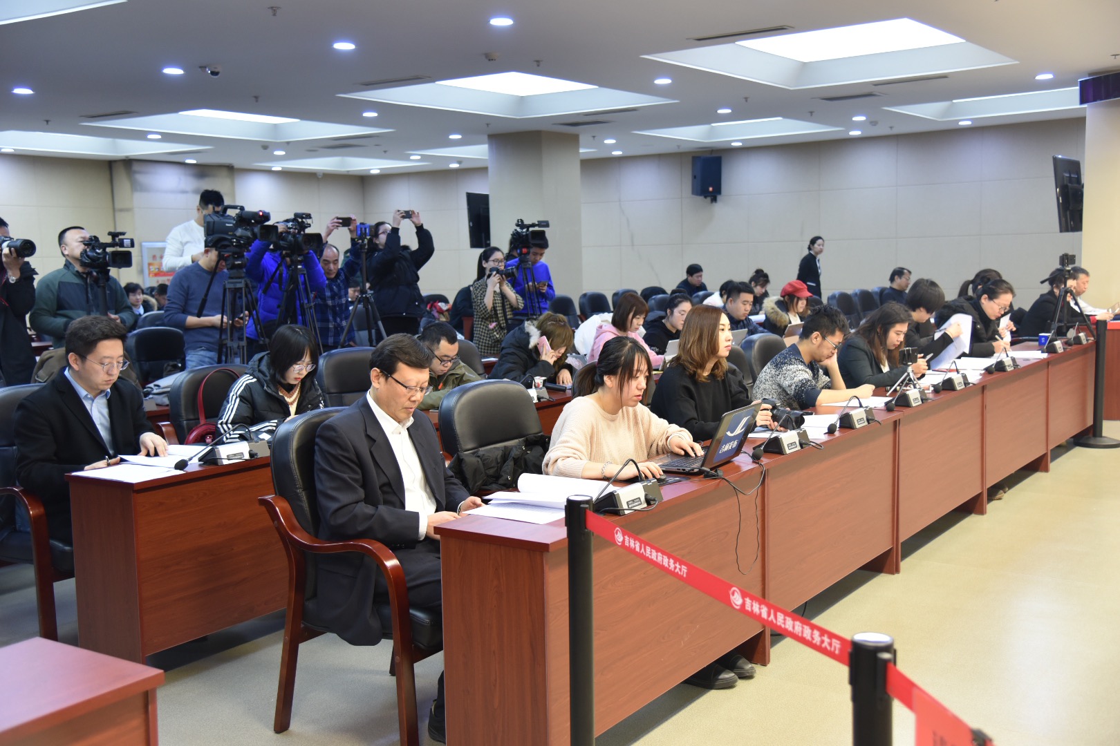 吉林省政府新闻办于2019年1月29日(星期二)10时在省政务大厅新闻发布厅召开2019年吉林省“两会”民生实事主题新闻发布会,吉林省民政厅厅长乔恒、吉林省人社厅厅长吴兰、吉林省卫健委主任张义、吉林省教育厅副厅长战高峰、吉林省文旅厅副厅长金旭东分别介绍了民生实事有关情况,并回答了记者提问。人民网、新华网、国际在线、中华工商时报、中国新闻社、香港商报、香港大公报、吉林广播电视台、吉林日报、中国吉林网等21家媒体近30名记者参加新闻发布会。吉林省委宣传部副部长、吉林省政府新闻办主任张树斌主持本场发布会。