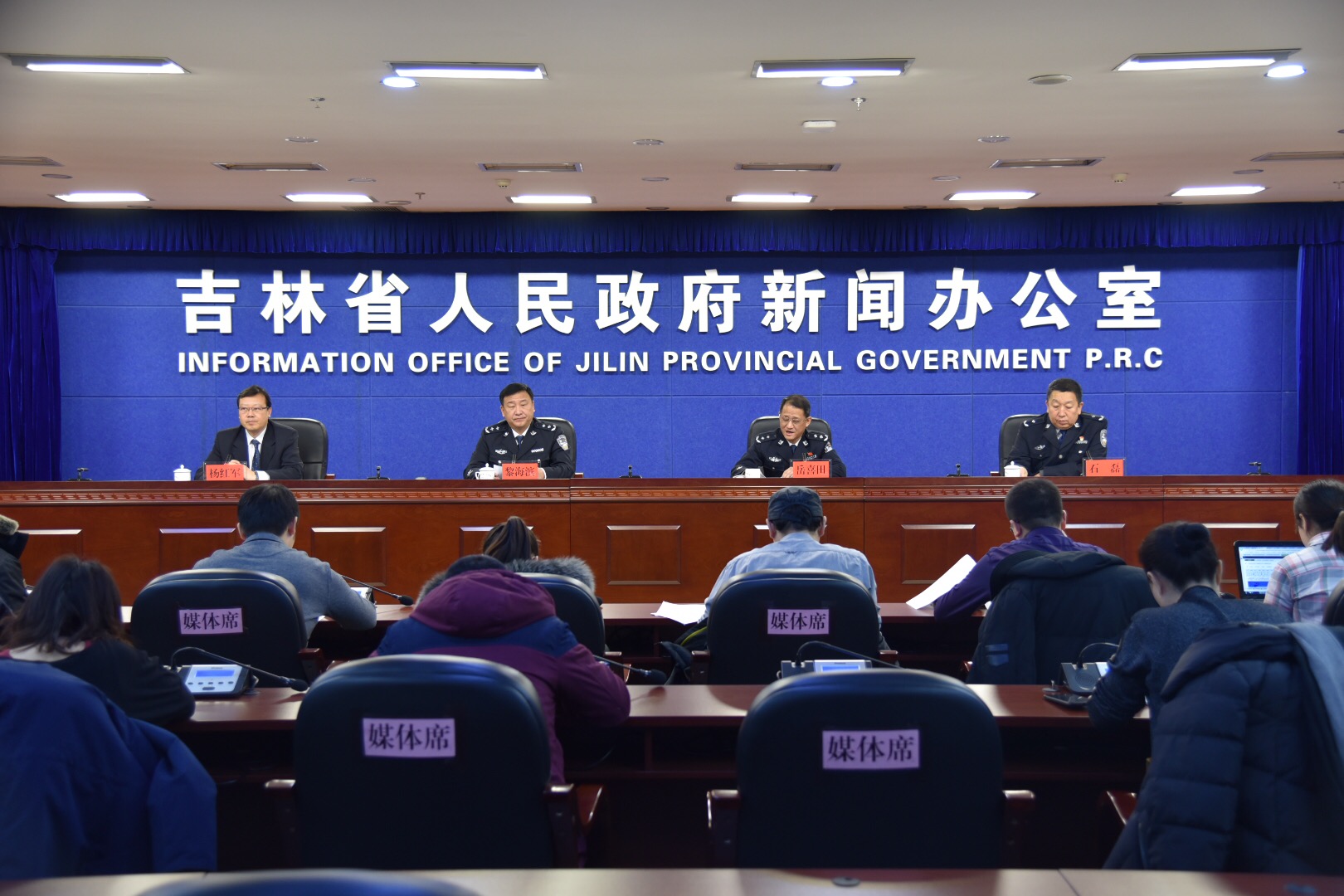 吉林省政府新闻办于2019年1月23日(星期三)上午10时在省政务大厅新闻发布厅召开新闻发布会,吉林省公安厅副厅长黎海滨介绍了相关情况,吉林省公安厅刑侦局局长岳喜田、吉林省公安厅刑侦局有组织犯罪侦查队政委石磊出席了发布会并回答了记者提问。中国新闻社、香港大公报、法制日报、北方法制报、吉林电视台、吉林广播电视台、吉林日报等15家媒体近20名记者参会。吉林省政府新闻办新闻发布处处长杨红军主持了本场新闻发布会。