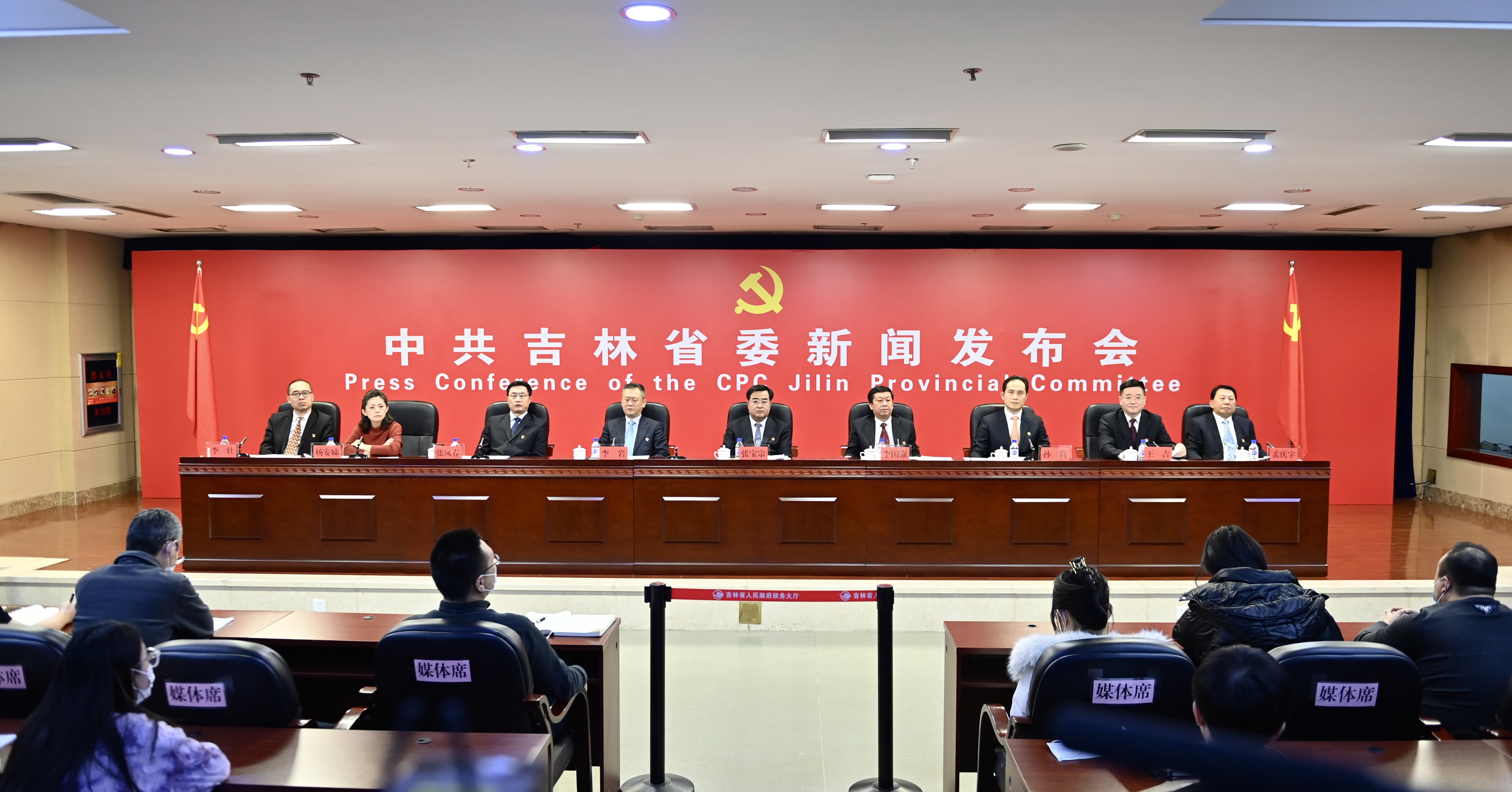 中共吉林省委于2021年12月21日14时召开省委经济工作会议新闻发布会,省委宣传部常务副部长张宝宗介绍并解读会议精神,省发改委主任李国强、省科技厅厅长李岩、省工信厅厅长孙简、省农业农村厅厅长张凤春、省商务厅一级巡视员孟庆宇、省文旅厅厅长杨安娣、省统计局局长王吉共同出席本次发布会并回答记者提问。人民日报、新华社、经济日报、中国日报、中新社、科技日报、新华网、人民网、凤凰卫视、香港商报、北方法制报、吉林日报、吉林广播电视台、中国吉林网等28家媒体40余名记者参会,省委宣传部副部长、省政府新闻办主任李壮主持了本场发布会。