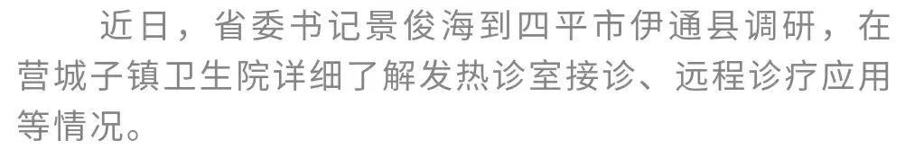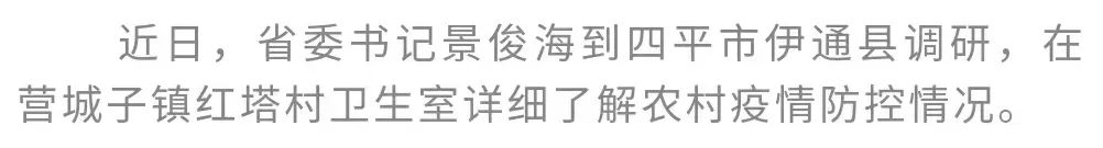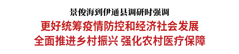 近日,省委书记景俊海到四平市伊通县调研。他强调,要深入贯彻习近平总书记重要讲话重要指示精神,全面学习把握落实党的二十大精神,按照中央农村工作会议部署要求,更好统筹疫情防控和经济社会发展,更好统筹发展和安全,全面推进乡村振兴,强化农村医疗保障,最大程度维护好农民群众身体健康和正常生产生活秩序。