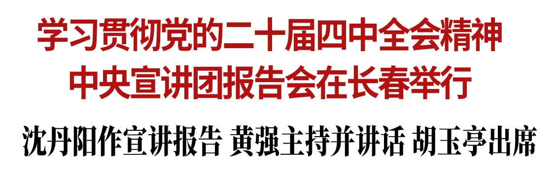 按照党中央统一部署,11月6日,学习贯彻党的二十届四中全会精神中央宣讲团报告会暨省委理论学习中心组集体(扩大)学习会在长春举行。中央宣讲团成员,国务院研究室党组书记、主任沈丹阳作宣讲报告。省委书记黄强主持报告会并讲话。省委副书记、省长胡玉亭出席。