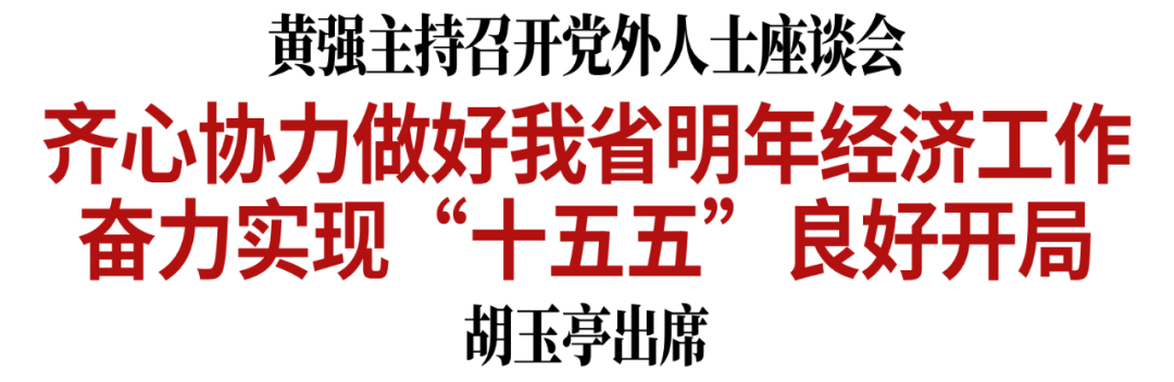 12月29日,省委书记黄强主持召开党外人士座谈会。省委副书记、省长胡玉亭出席会议。