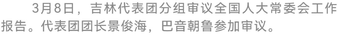 3月8日下午,出席十三届全国人大五次会议的吉林代表团分组审议全国人大常委会工作报告。代表团团长景俊海,巴音朝鲁参加审议。