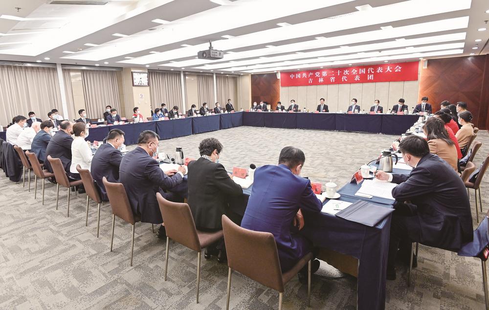 10月16日下午,出席党的二十大的吉林代表团召开全体会议,认真讨论习近平总书记代表十九届中央委员会所作的报告。 本报特派记者 邹乃硕 摄