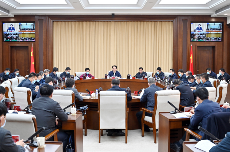 11月13日,省疫情防控领导小组(扩大)会议以视频形式召开。省委书记景俊海出席会议并讲话,省委副书记、省长韩俊主持会议。邹乃硕 摄
