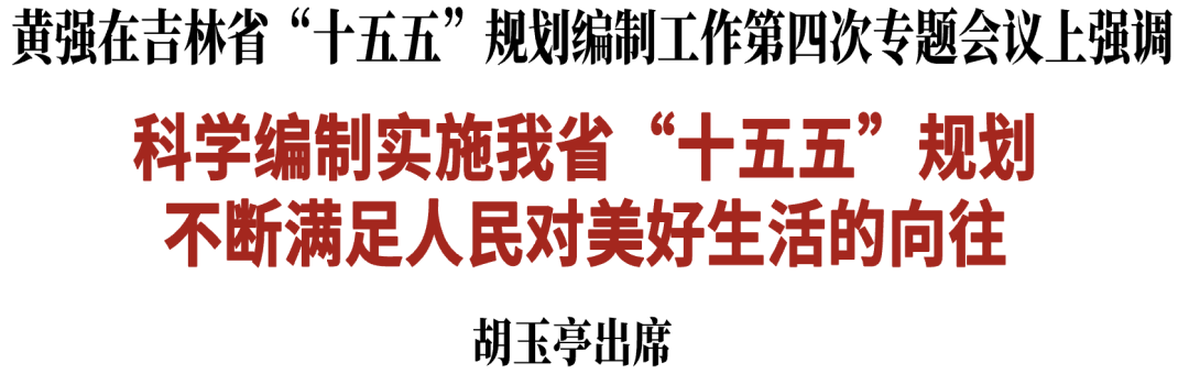 11月14日,省委书记黄强主持召开吉林省“十五五”规划编制工作第四次专题会议。省委副书记、省长胡玉亭出席会议并提出工作要求。