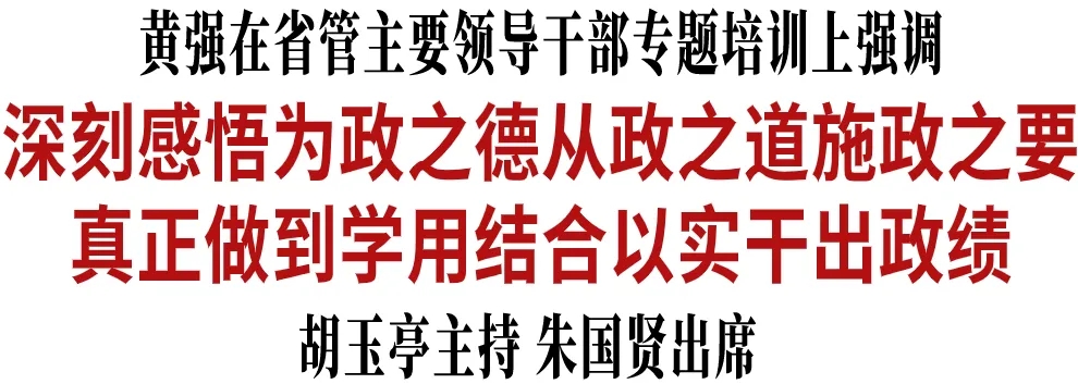 3月16日,省委以视频形式举行省管主要领导干部“提升政治能力、树立和践行正确政绩观”专题培训暨学习教育读书班。省委书记黄强出席并作专题辅导。省委副书记、省长胡玉亭主持专题培训。省政协主席朱国贤出席。