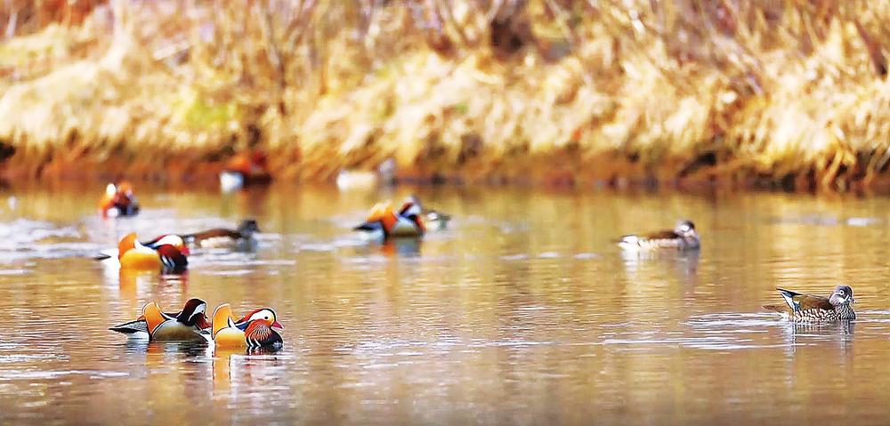 二道白河镇来了新“游客” 百余只鸳鸯怡然戏水