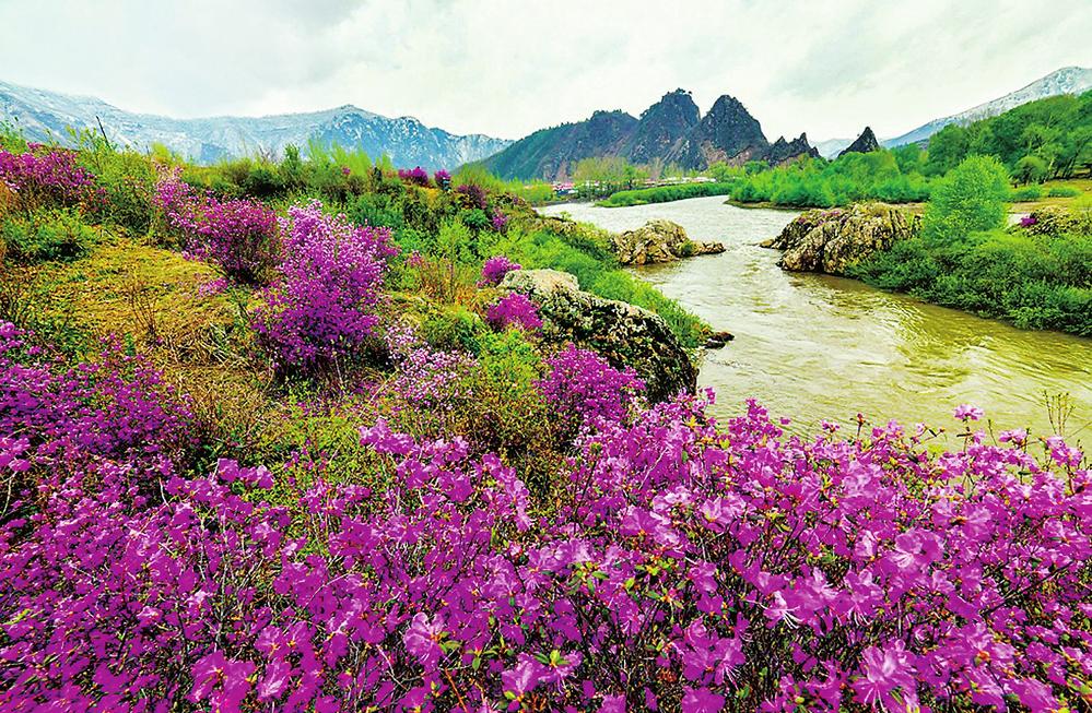 鸭绿江畔金达莱花盛开